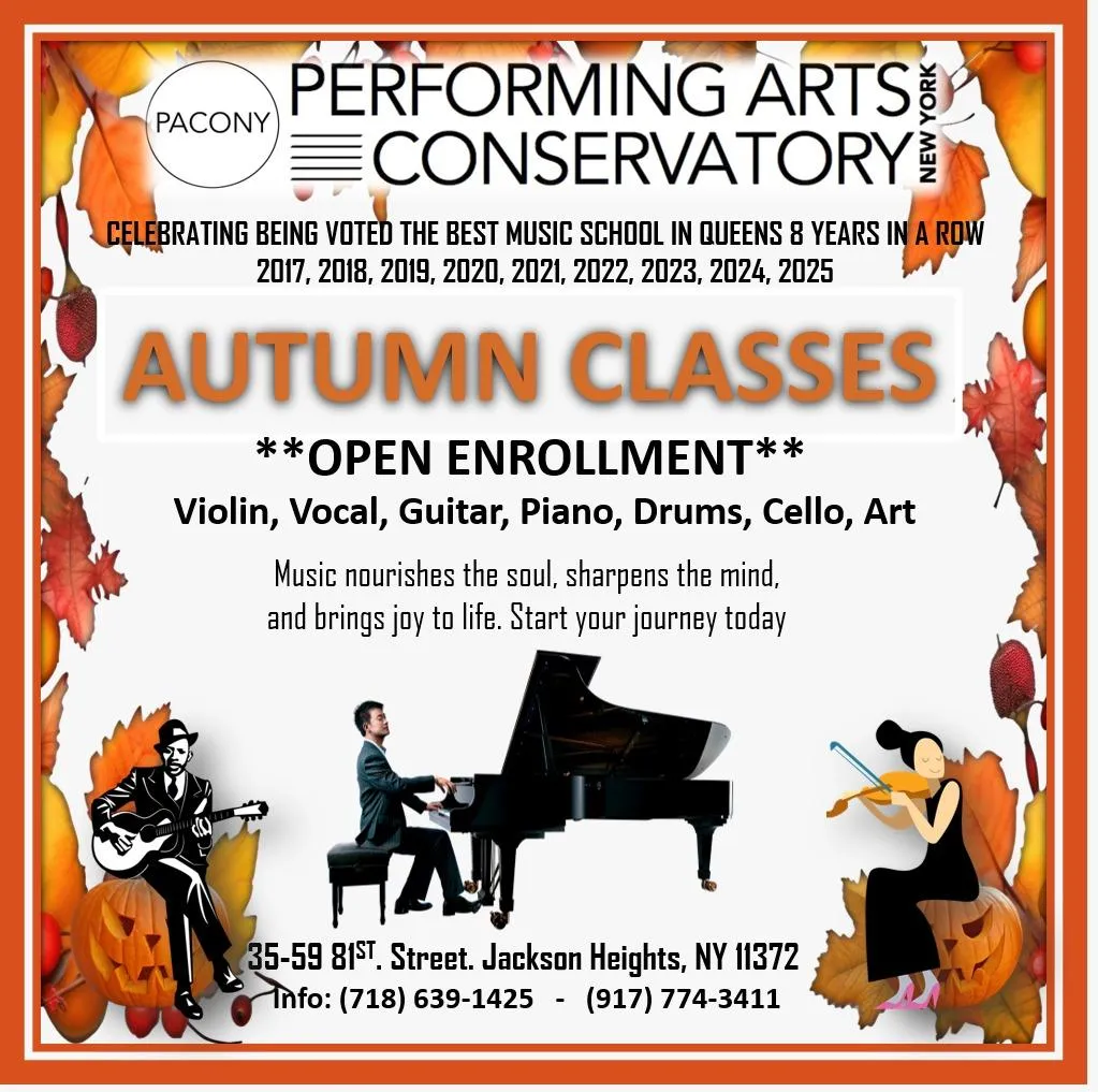 Performing Arts Conservatory of New York provides Piano, Voice, Guitar, and Violin lessons for kids, teens, and adults in Jackson Heights, Queens, New York.